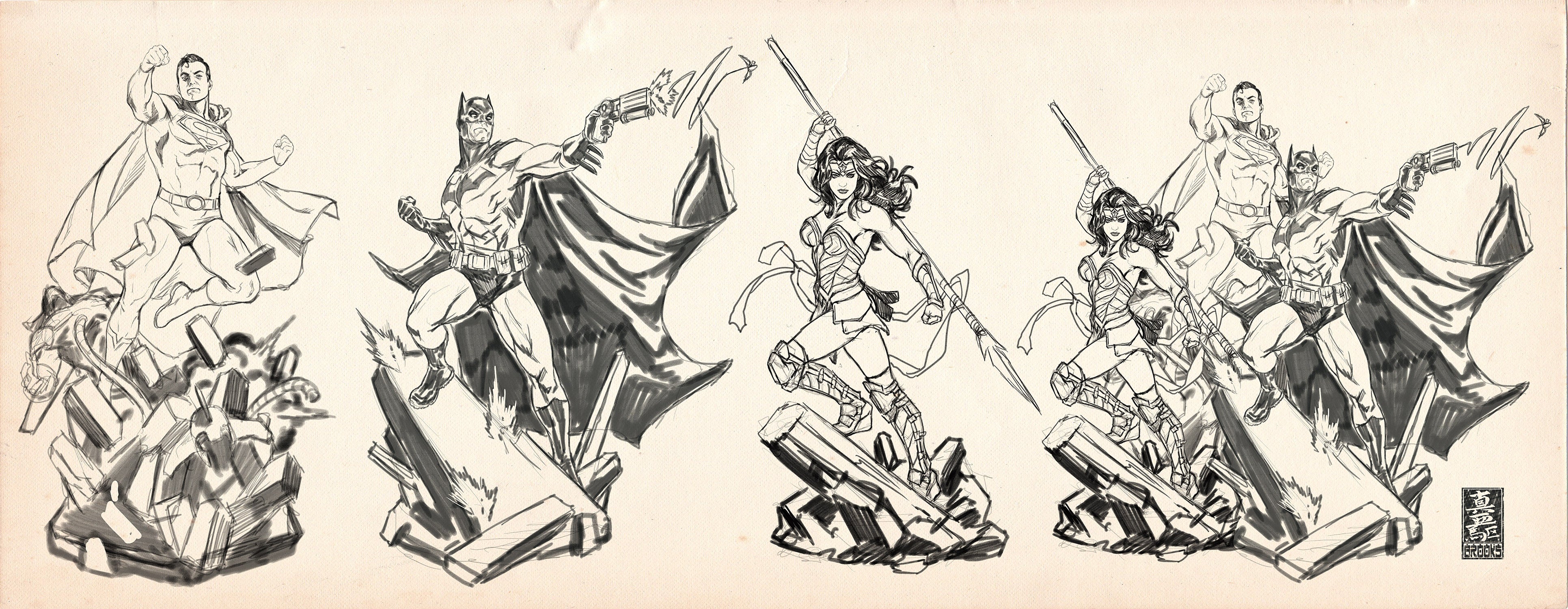 A trinity set featuring Wonderwoman, Bat,an and Superman, brawling it out with the Parademons deep within the hellish world of Apokolips ruled by the supreme villain of the DC Multiverse, Darkseid.