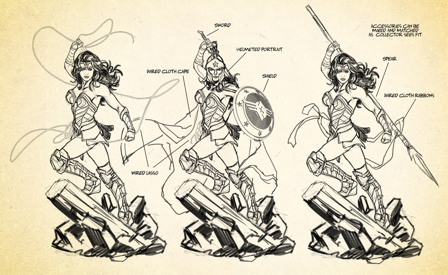 Displaying the grace and confidence of a seasoned warrior, Diana holds her own while fending off Darkseid’s shock troops in an epic battle set among cybernetic ruins and destroyed wreckage. A versatile combatant who excels in close-quarters combat, her spear and magically imbued shield make short work of any villain or fiend unfortunate enough to cross paths with her.
